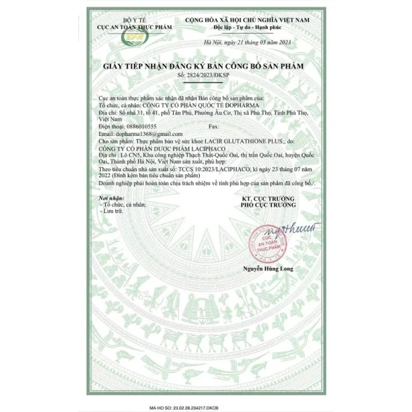 - Công ty đăng ký công bố: Công ty Cổ phần Quốc tế DOPHARMA