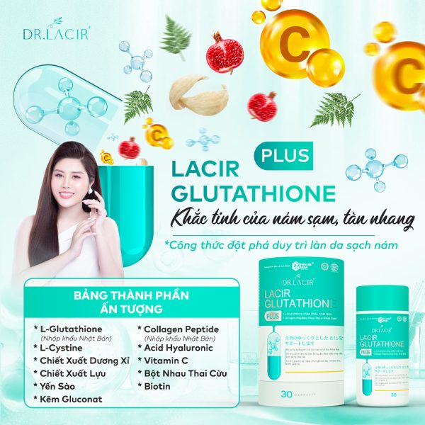 Cùng Shop tìm hiểu sản phẩm Viên Uống Lacir Glutathione Plus – Bản Nâng Cấp, Trắng Da, Mờ Nám từ sâu bên trong nhé a